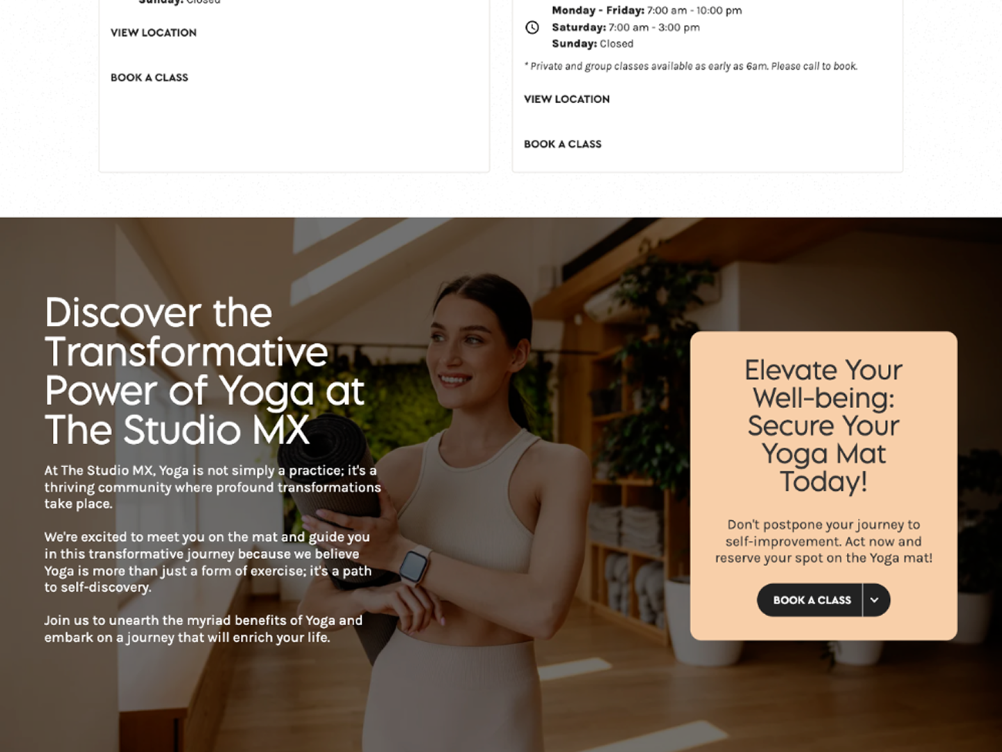 The Studio MX partnered with Row to create a vibrant, user-friendly website that reflects their mission of inspiring vitality through movement. Our custom design showcases the studio's diverse classes, expert instructors, and wellness services, while capturing its sense of community and transformation. Through ongoing SEO and strategic content, we’ve helped more people find their studio, book classes, rent equipment, and join workshops. The result is a digital presence that positions The Studio MX as the go-to wellness destination in the Bay of Banderas.